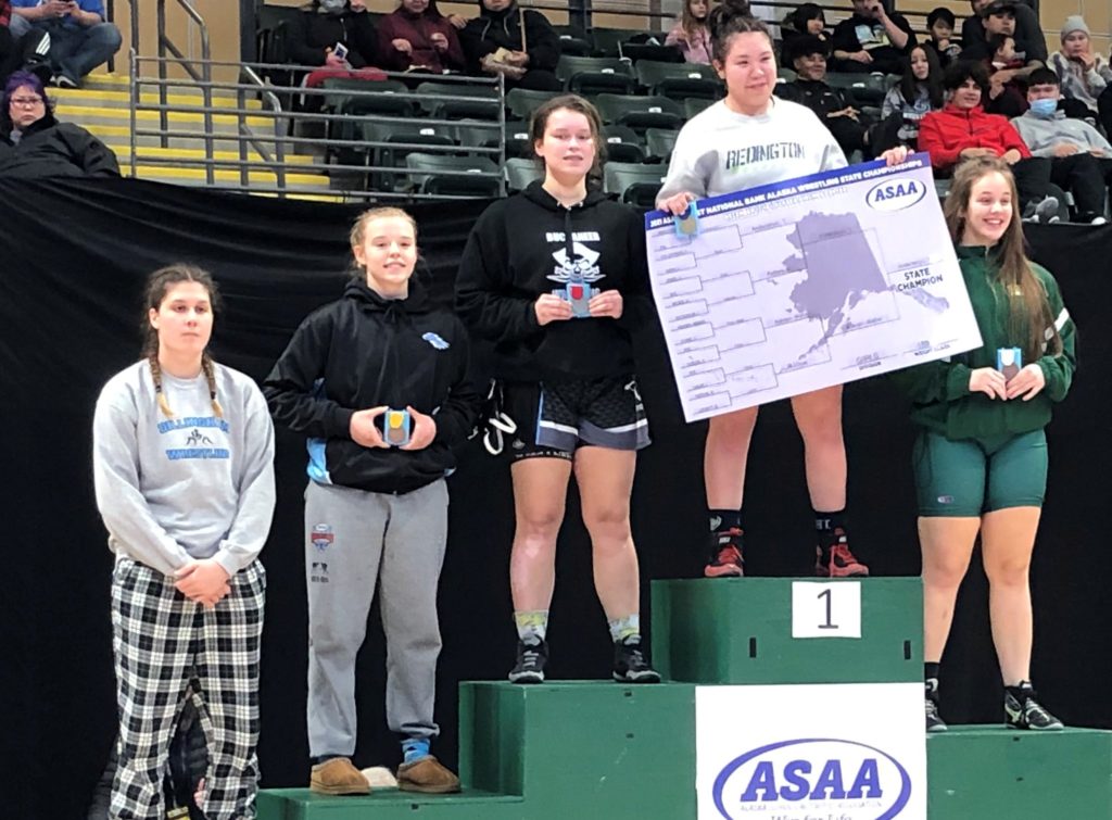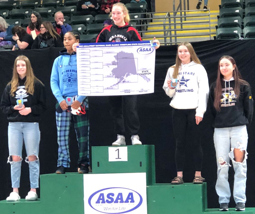 - Quarterfinal – Alyvia Askren-Weber (Valdez High School) 6-3 won by fall over Kiley Clouse (Dillingham High School) 6-6 (Fall 5:27)