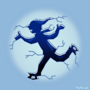 At this point in the season, the pond is not completely frozen and serious danger exists of falling through the ice.