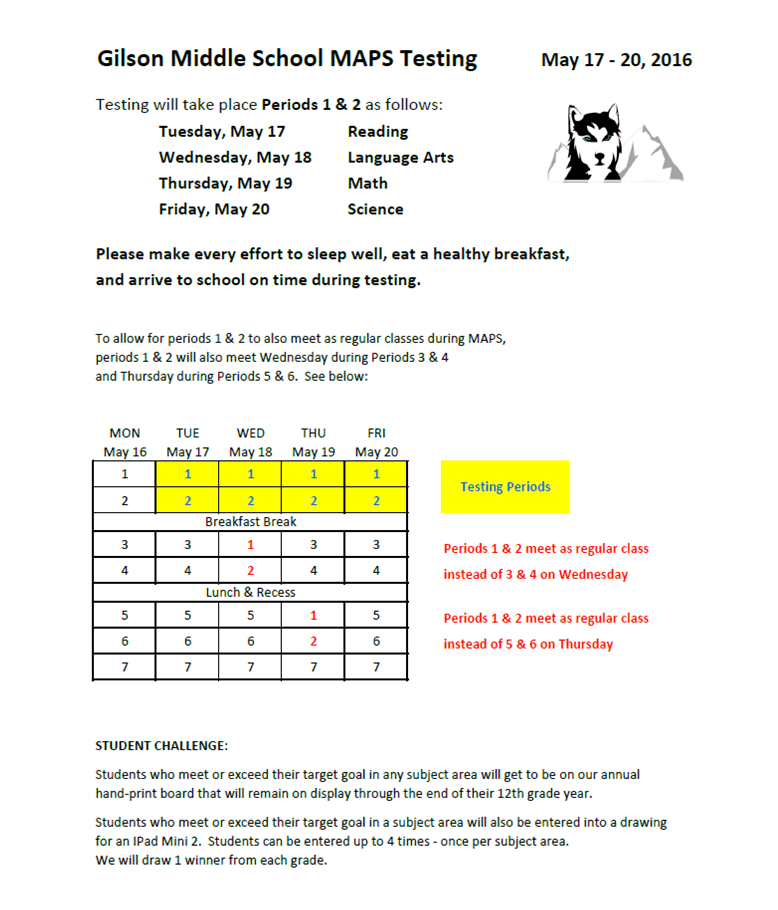 Gilson Middle School MAPS Testing