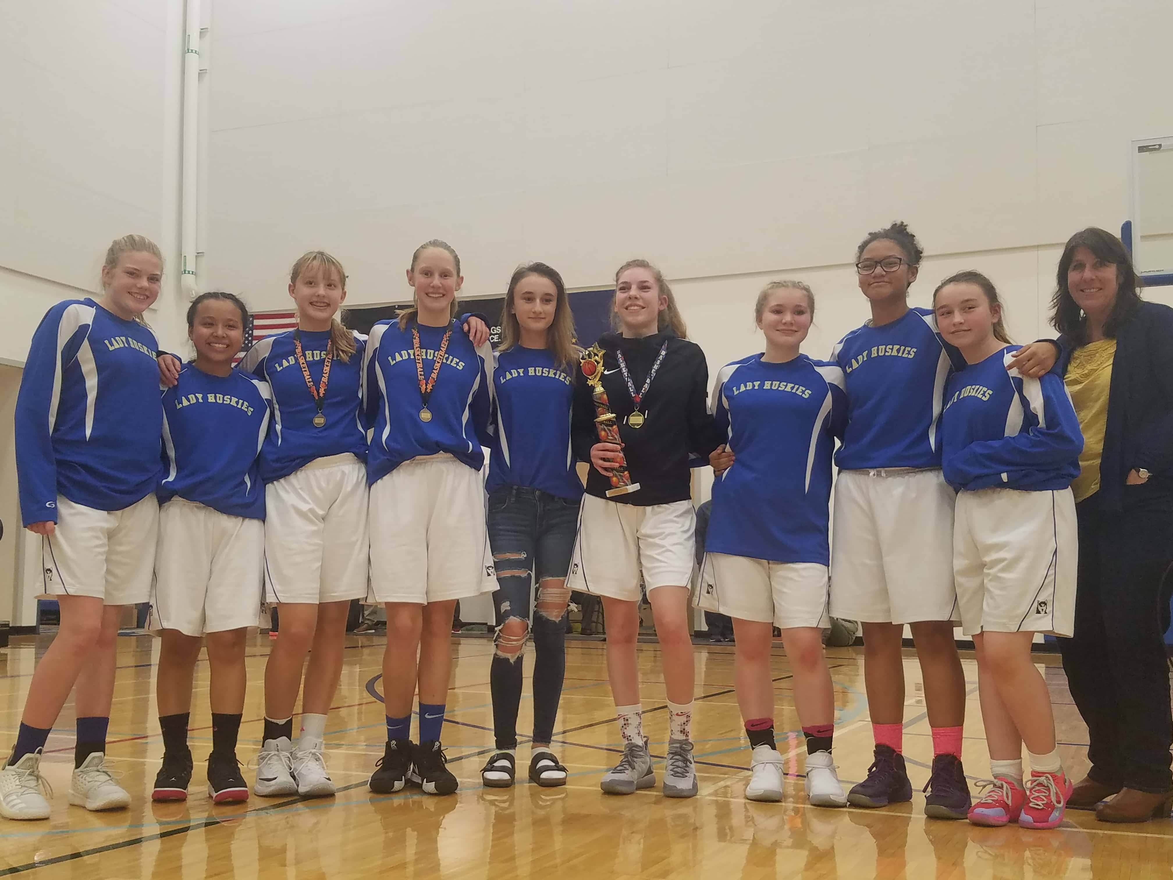 Tenacious defense was played by both Monroe and Valdez in the 1st round of the GMS tournament Friday but Valdez ended up on the winning end with a score of 21 to 17. Masen Holmes had 6 points. Carsyn Hinkle and Chloe Auble added 5 apiece. Holmes had 9 rebounds and Hinkle 6 rebounds. The Huskies faced Teeland in their 2nd game on Saturday and won 33 to 16. Hinkle scored 10 points; Holmes, 9 points and Chloe Auble added 8 points. Holmes and Acacia Montgomery added 6