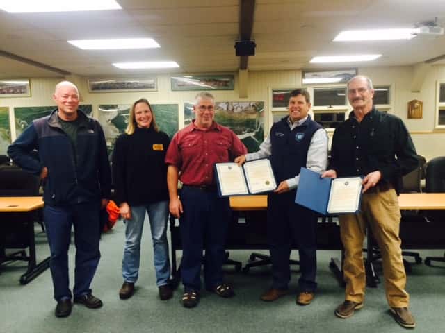 The Ports & Harbor Commission recognized the Captain and Crew of the F/V Kingfisher. Captain Thane Miller and his crew, Diane Schreier, Lisa Clemens, and Larry Noble, pulled five individuals out of the water after their 27 foot recreational vessel, Pure Pleasure, sank this summer. The crew was responsible for the survival of the two women and three men who were clinging to an overturned rubber boat. The Commission also recognized the efforts made by the U.S. Coast Guard and the Valdez Fire Department.