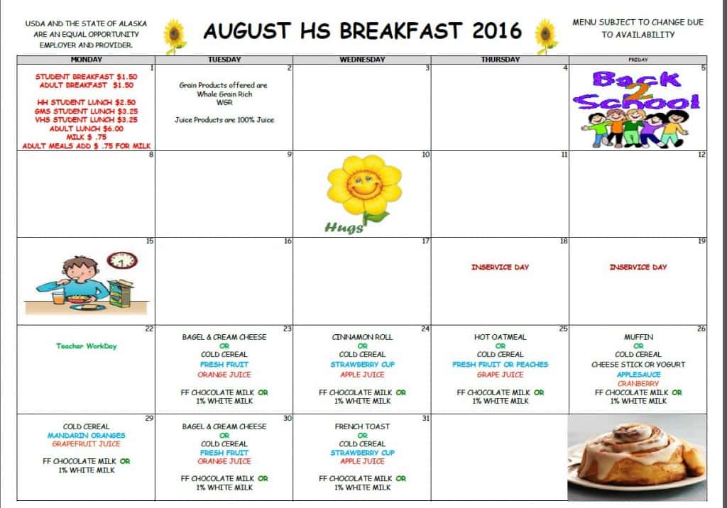 VHS School Menus- August & September